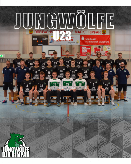 Nach einem guten dritten Platz in der vergangenen Saison wollen sich die Jungwölfe auch in der anlaufenden Saison mit attraktivem Tempohandball präsentieren. Für die Jungwölfe steht in der kommenden Saison die Entwicklung der jungen Talente und das aktive Einbinden der U19 in den Männerbereich auf dem Programm. In der Vorbereitung durften die 2007er und 2008er der Jungwölfe viel Spielzeit im Männerbereich sammeln. Dass die Spieler der Jungwölfe mit ihrer Entwicklung auf dem richtigen Weg sind, zeigt das Tor von Finn Daugs, der vor dem Saisonstart der DJK Rimpar bereits in seinem Drittliga-Debüt direkt ein Tor werfen konnte. Der Spagat aus Spielergebnis und Spielerentwicklung soll auch in der kommenden Saison gelingen und wird die Hauptaufgabe des Trainerteams der U23 sein.