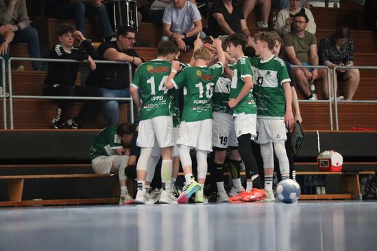 „Am Ende braucht es halt ein bisschen Glück.“ Diese vielzitierte Floskel steht über den vergangenen Wochen, die die U16 und U17 der SG DJK Rimpar erlebt haben. Trotz aller Anstrengungen fehlte zu viel von genau diesem Glück über die gesamte Zeit gesehen. Aus einer erfolgreichen Saison kommend bestritten die Jahrgänge 2009 und 2010 eine kurze, aber anspruchsvolle Vorbereitung auf die Bundesliga- und Regionalligaqualifikationsrunden, die in der erfolgreichen Teilnahme an einem internationalen Einladungsturnier in Düdelingen gipfelte. Hier zog das Team fulminant ins Viertelfinale ein und zeigte gegen internationale Topteams der Jahrgänge 2008/2009 eine ansprechende Leistung. Leider endete hier der Aufwärtstrend und die Verletztenmissäre begann: so musste im Laufe der Bundesligaquali in beinahe jedem Spiel ein neuer Ausfall einer Stammkraft hingenommen werden, sodass bis zum letzten Spiel lediglich 6 spielfähige Feldspieler übrig blieben, um den Einzug in die nächste Runde zu sichern.