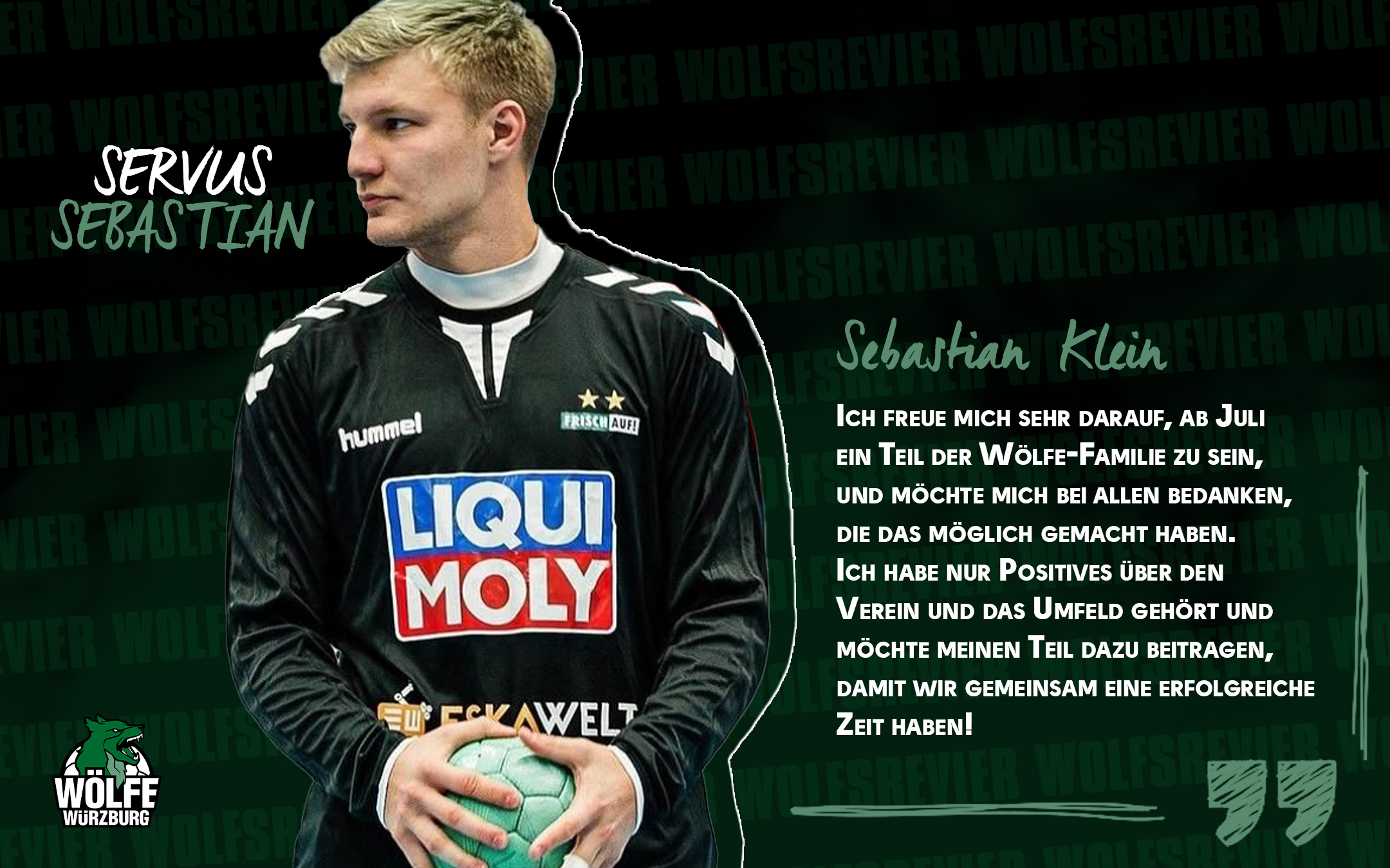 "Wir freuen uns auf der Torhüterposition mit Sebastian Klein einen jungen und bestens ausgebildeten Nachfolger für Moritz Ebert gefunden zu haben. In der Jugend wurde Sebastian zunächst beim TV Grosswallstadt und beim HC Erlangen ausgebildet, bevor er sich dem SC DHfK Leipzig II in der 3. Liga und zur Ausleihe dem ThSV Eisenach anschloss. Willkommen im Wolfsrudel!"
