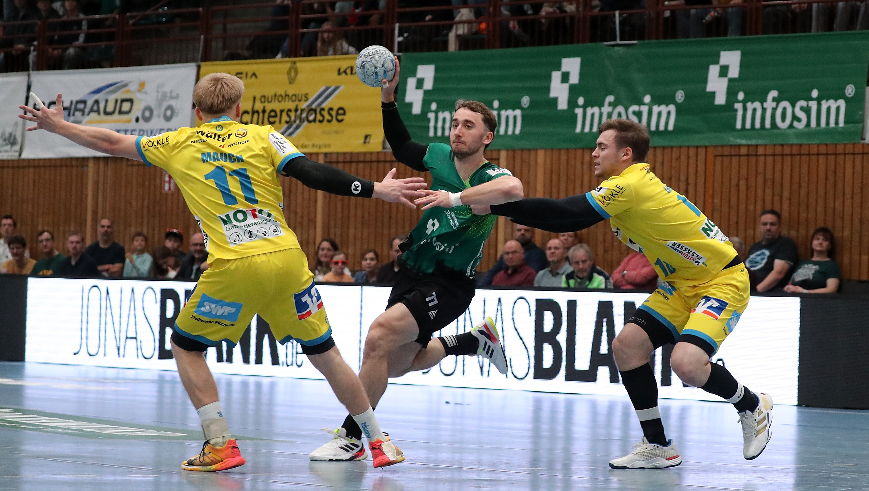 Die Gäste aus Pforzheim präsentierten sich lange Zeit auf Augenhöhe. In der Anfangsphase lagen sie mehrfach in Führung und hielten das Spiel bis Mitte der zweiten Halbzeit offen. Erst eine rund achtminütige torlose Phase brachte die Wölfe entscheidend in Front – vom 17:16 zogen die Gastgeber auf 21:16 davon.